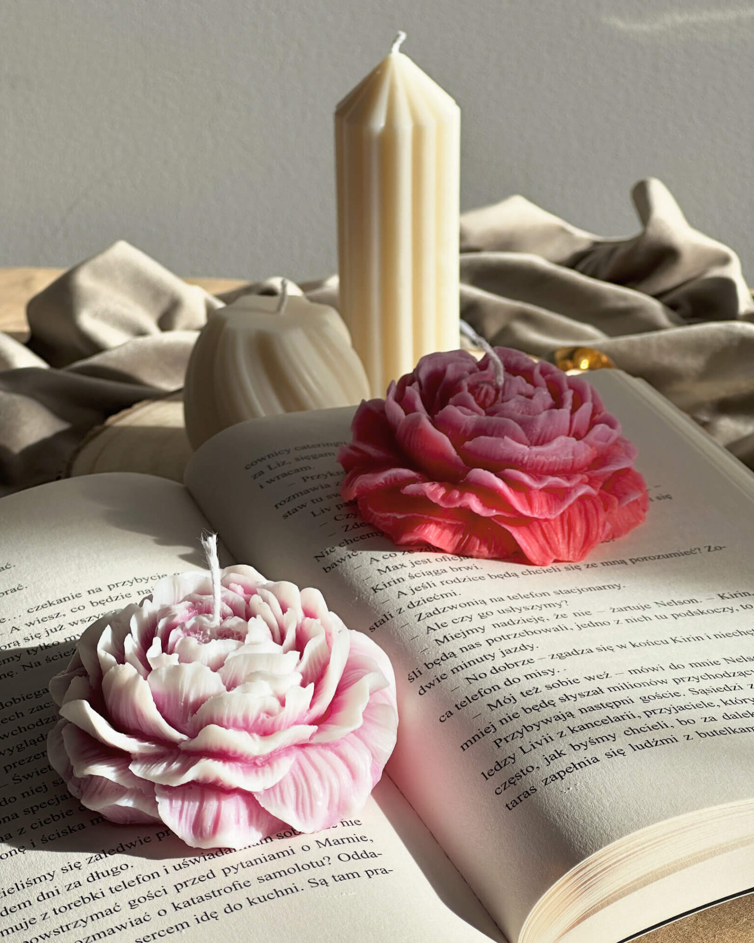 Elegancka świeca sojowa w kształcie kwiatu piwonii będzie idealnym dodatkiem do Twojego wnętrza.