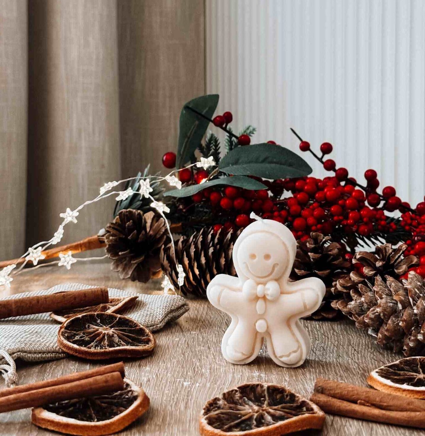 Świeca w kształcie piernika to urocza, świąteczna ozdoba, która przywodzi na myśl tradycyjne dekoracje bożonarodzeniowe. Jej klasyczny kształt i starannie wykonane detale wprowadzają do wnętrza ciepły, domowy klimat. Idealna na świąteczny stół lub jako dodatek do zimowych aranżacji w salonie.
