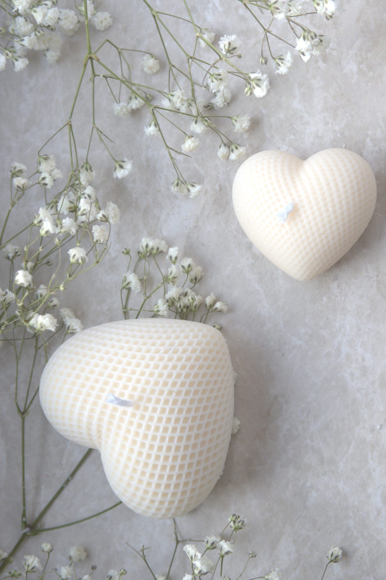 Świeca w kształcie serca z teksturą przypominającą sweter to idealny wybór na zimowe wieczory.